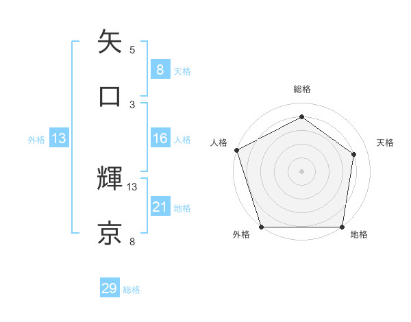 矢口 輝京さんを姓名の画数から五運を鑑定