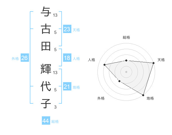 与古田 輝代子さんを姓名の画数から五運を鑑定