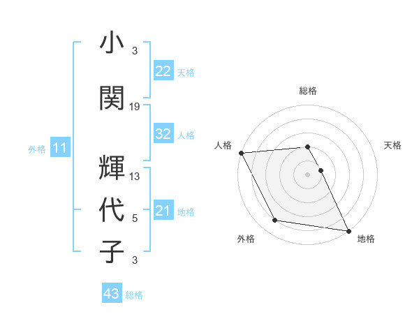 小関 輝代子さんを姓名の画数から五運を鑑定