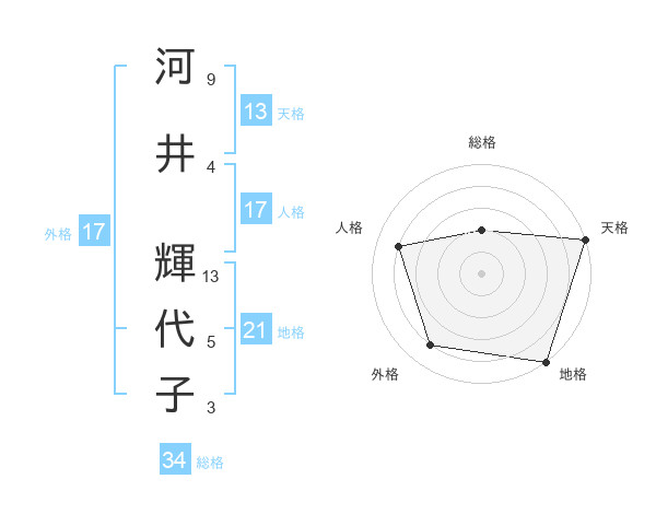 河井 輝代子さんを姓名の画数から五運を鑑定