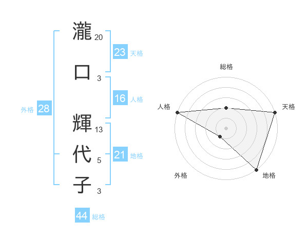 瀧口 輝代子さんを姓名の画数から五運を鑑定