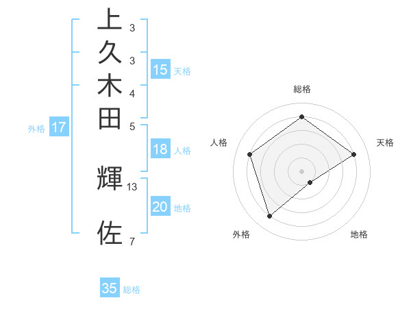 上久木田 輝佐さんの総格は35画の4点!