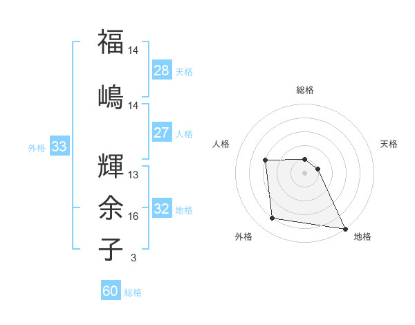 福嶋 輝余子さんを姓名の画数から五運を鑑定