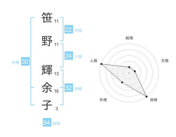 笹野 輝余子さんの天格は22画の1点!