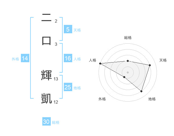 二口 輝凱さんを姓名の画数から五運を鑑定
