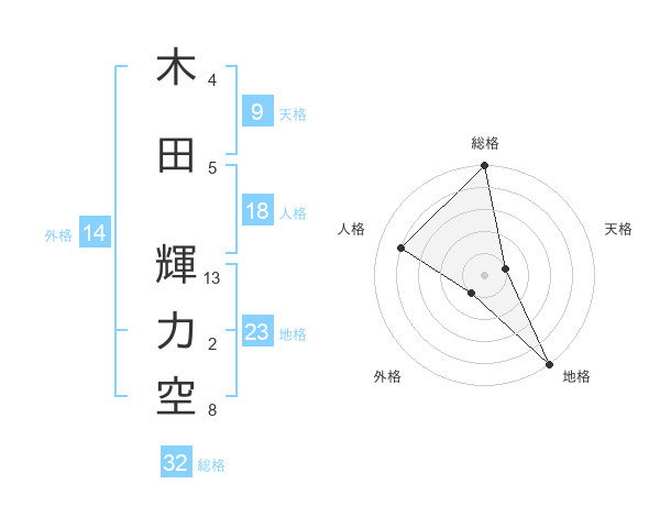 木田 輝力空さんを姓名の画数から五運を鑑定