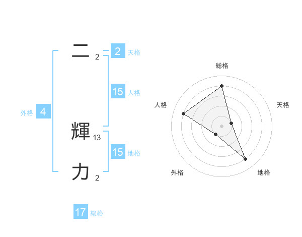 二 輝力さんの総格は17画の4点!