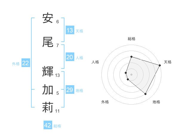 安尾 輝加莉さんの天格は13画の5点!