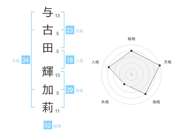 与古田 輝加莉さんを姓名の画数から五運を鑑定