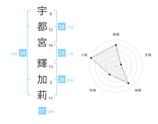 宇都宮 輝加莉さんを姓名の画数から五運を鑑定