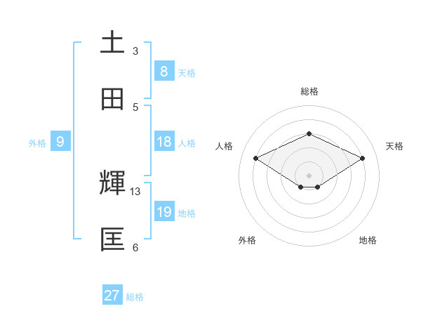 土田 輝匡さんを姓名の画数から五運を鑑定