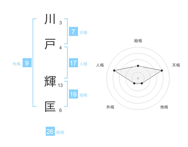 川戸 輝匡さんを姓名の画数から五運を鑑定