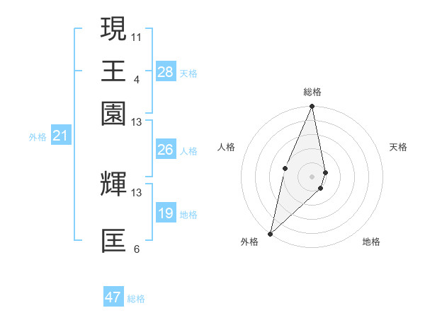 現王園 輝匡さんを姓名の画数から五運を鑑定