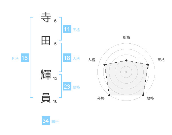 寺田 輝員さんを姓名の画数から五運を鑑定