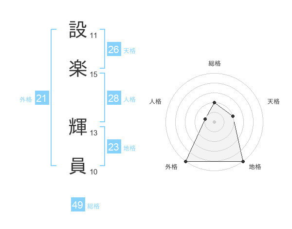 設楽 輝員さんを姓名の画数から五運を鑑定
