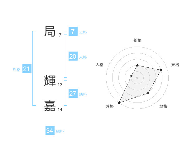 局 輝嘉さんの外格は21画の5点!
