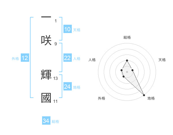 一咲 輝國さんを姓名の画数から五運を鑑定