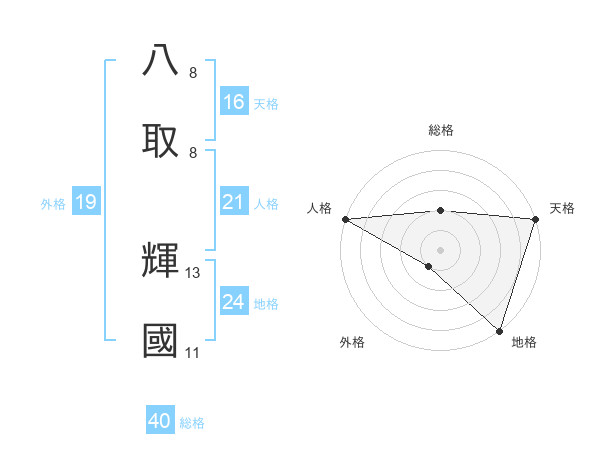 八取 輝國さんの総格は40画の2点!