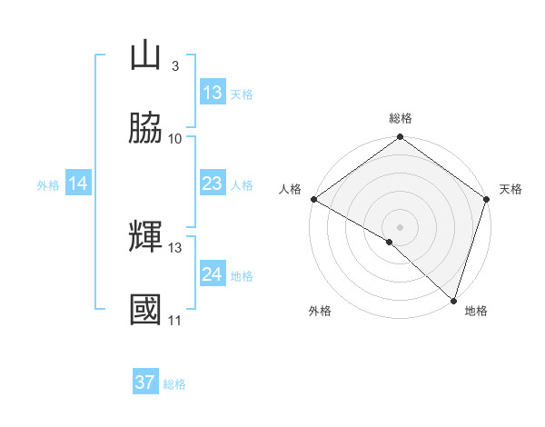山脇 輝國さんを姓名の画数から五運を鑑定