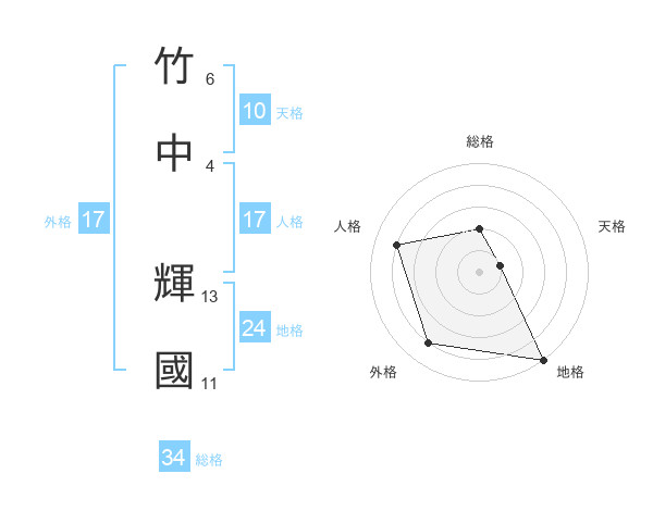 竹中 輝國さんを姓名の画数から五運を鑑定