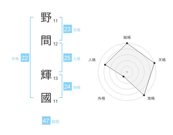 野間 輝國さんの総格は47画の5点