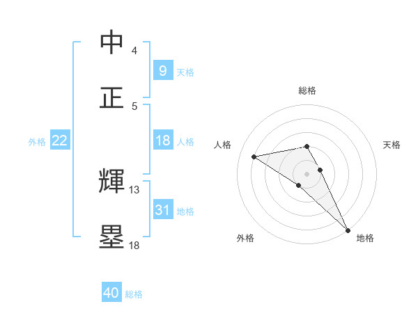 中正 輝塁さんの総格は40画の2点!