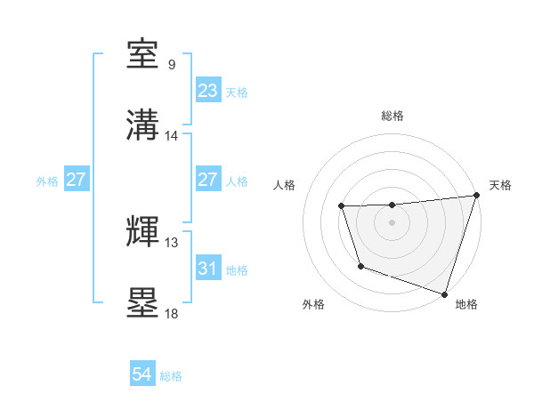 室溝 輝塁さんの総格は54画の1点!