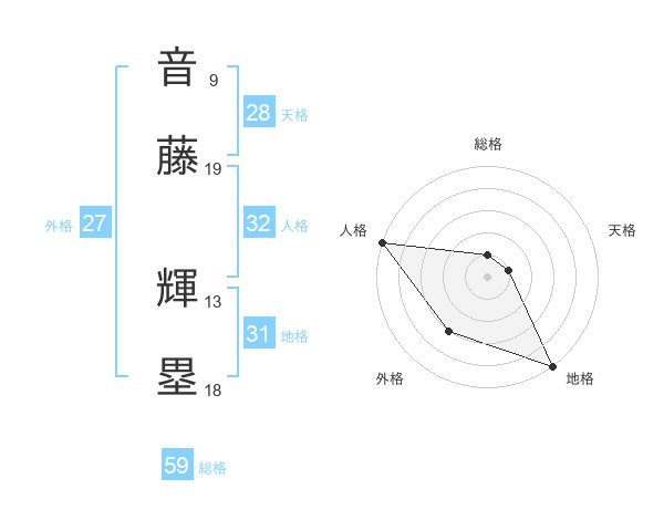 音藤 輝塁さんを姓名の画数から五運を鑑定