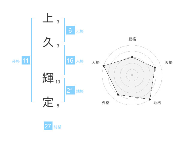 上久 輝定さんの総格は27画の3点!