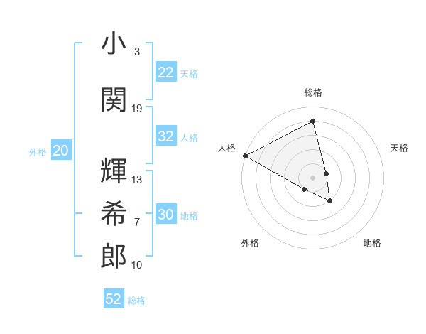 小関 輝希郎さんの総格は52画の4点!