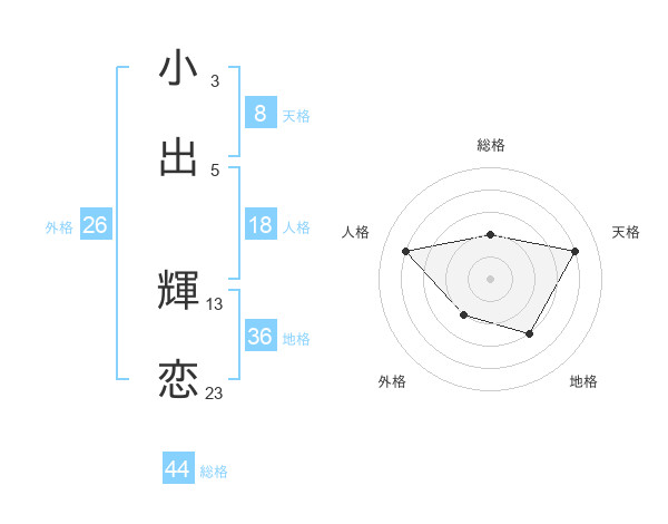小出 輝恋さんの総格は44画の2点!