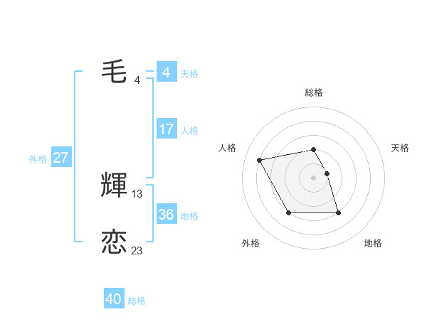 毛 輝恋さんを姓名の画数から五運を鑑定