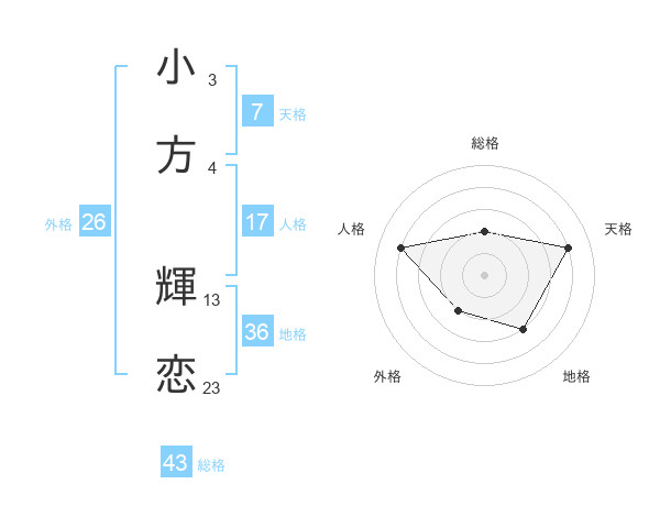 小方 輝恋さんの総格は43画の2点