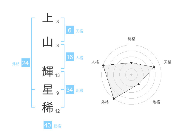 上山 輝星稀さんを姓名の画数から五運を鑑定