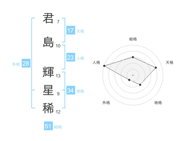 君島 輝星稀さんの総格は51画の3点!