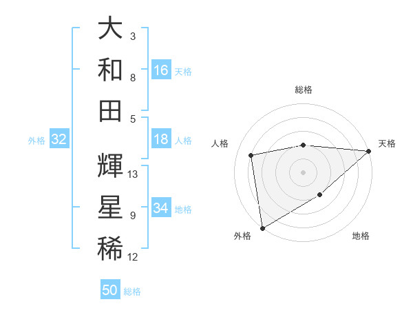 大和田 輝星稀さんを姓名の画数から五運を鑑定