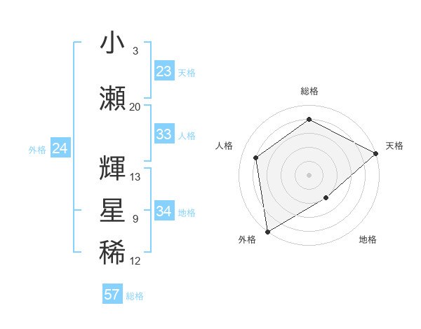 小瀬 輝星稀さんの外格は24画の5点!
