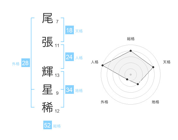 尾張 輝星稀さんを姓名の画数から五運を鑑定