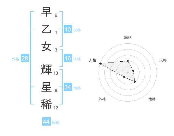 早乙女 輝星稀さんを姓名の画数から五運を鑑定