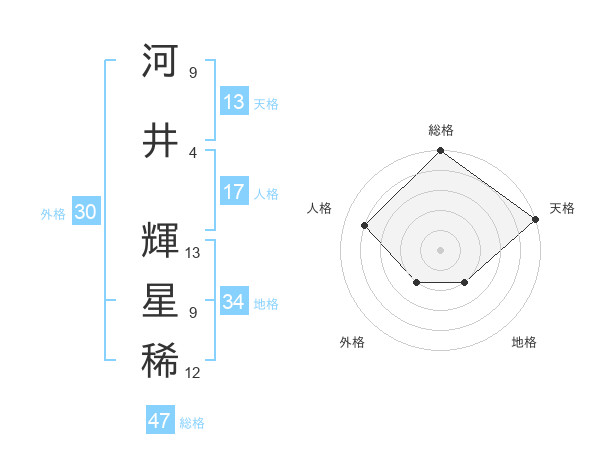 河井 輝星稀さんの総格は47画の5点!