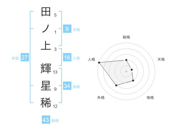 田ノ上 輝星稀さんを姓名の画数から五運を鑑定
