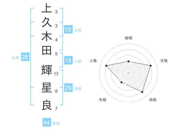 上久木田 輝星良さんを姓名の画数から五運を鑑定