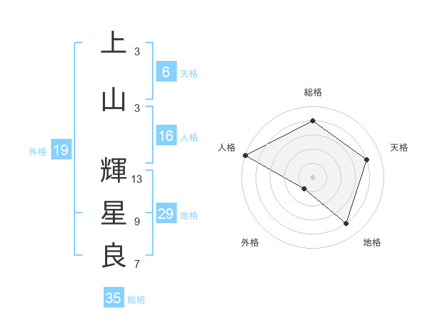 上山 輝星良さんを姓名の画数から五運を鑑定