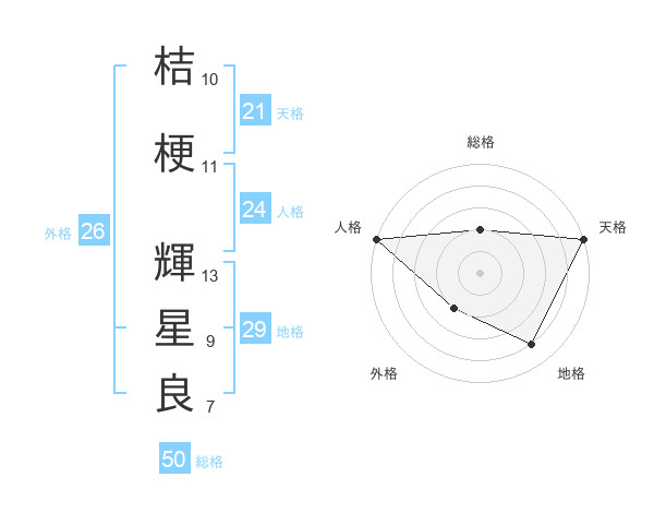 桔梗 輝星良さんの総格は50画の2点!