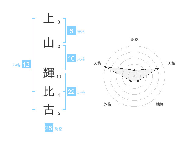 上山 輝比古さんを姓名の画数から五運を鑑定