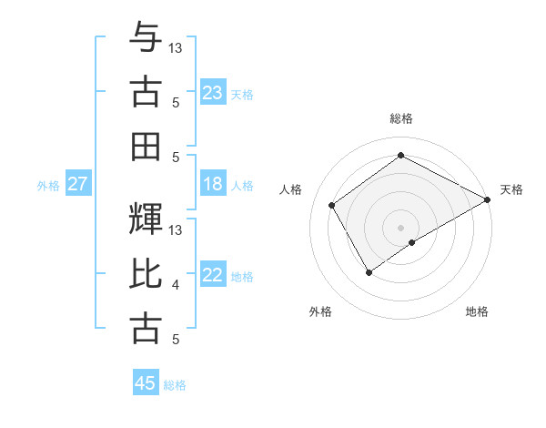 与古田 輝比古さんの総格は45画の4点!