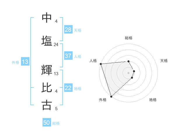 中塩 輝比古さんを姓名の画数から五運を鑑定
