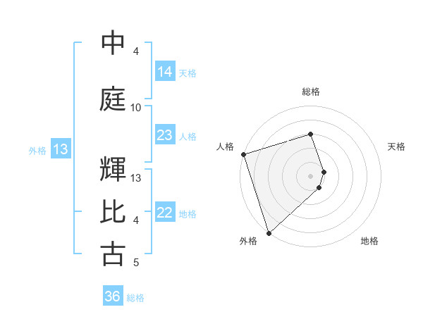 中庭 輝比古さんを姓名の画数から五運を鑑定