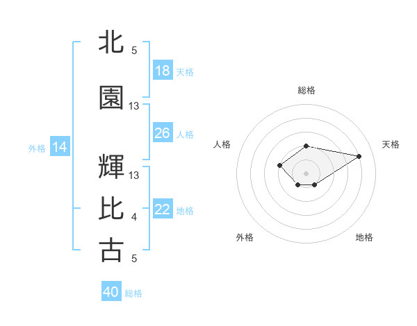 北園 輝比古さんを姓名の画数から五運を鑑定