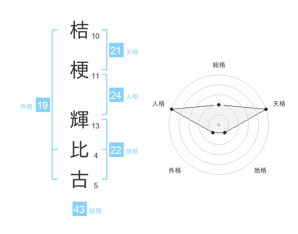 桔梗 輝比古さんの天格は21画の5点!